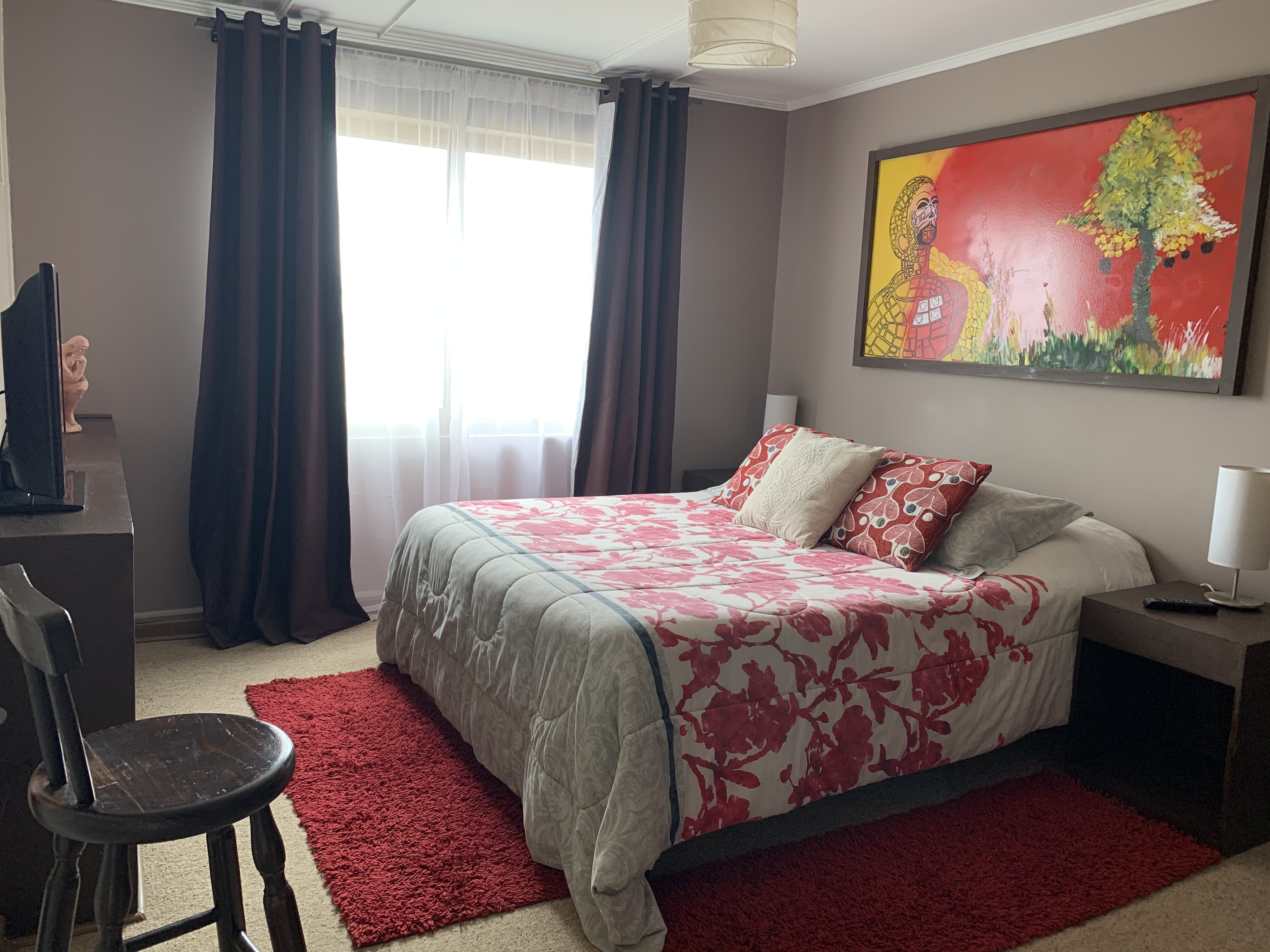 Habitación con baño privado equipado, TV de pantalla plana con canales por cable, frigobar, clóset, calefacción central.